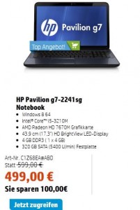 - HP Pavilion g7-2241sg mit Windows 8, Intel Core I5 Prozessor und AMD Radeon HD 7670M Graphil für 499 Euro statt 599 Euro