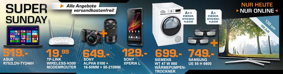 Bei den heutigen Saturn-Angeboten sind einige Schnäppchen dabei, die alle versandkostenfrei geliefert werden: